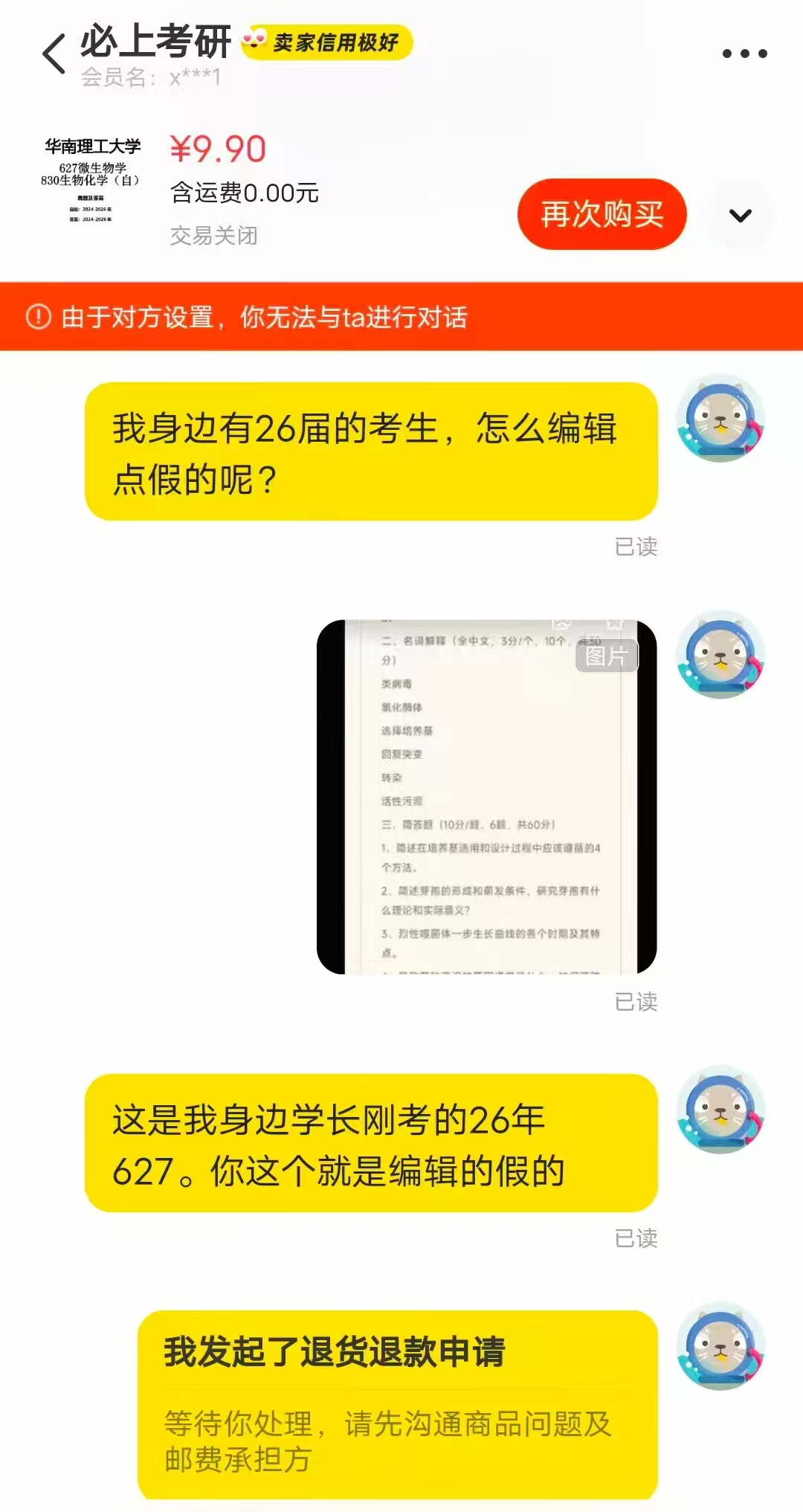 以下图片是在某鱼上发现卖家编辑假题目的真实经历。